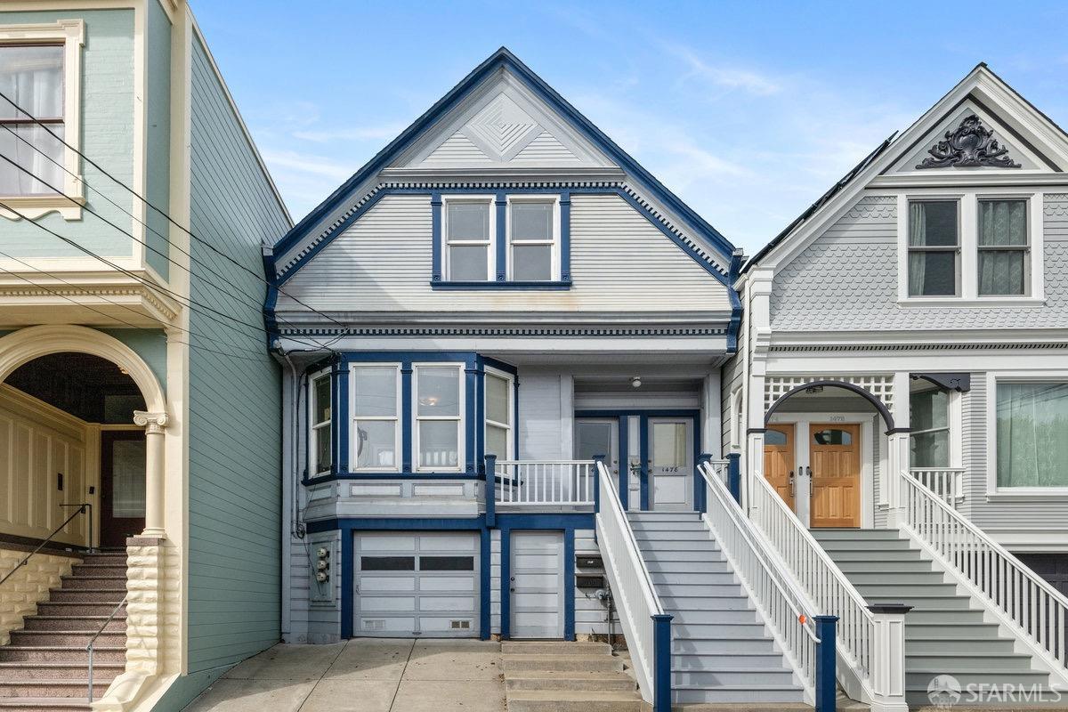 This classic, peaked roof Noe Valley Victorian has been loved by the same family for generations!! This is a very special home that has a lovely back yard accessed directly from the kitchen, a rare novelty in this part of town. Ideal location close to transportation, shops and amenities. 1476 Sanchez is on a coveted San Francisco slow street that is flat with wide sidewalks, perfect for morning strolls and evening bike rides. 1 car garage parking plus additional space in driveway and ample storage complete this home.